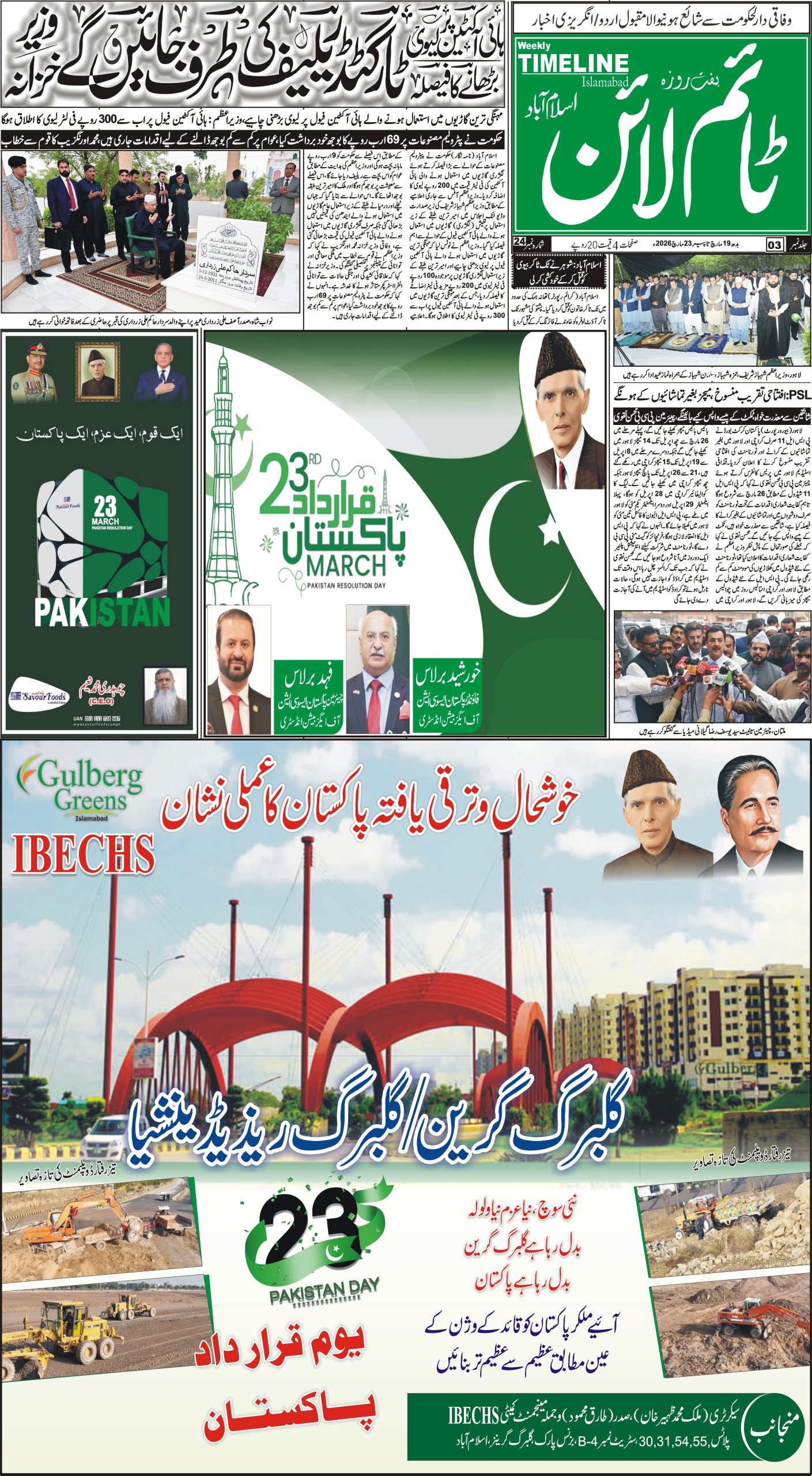 اخبار ٹائم لائن 23 مارچ 2026 Web Desk 24 مارچ, 2026 23 مارچ 2026 Table of Contents 23 مارچ 2026 مزید پڑھیں: ٹائم لائن 23 مارچ 2026 https://dailytimeline.pk/?p=10053 https://timelinenews.com.pk/america-suffers-major-setback-in-iran-war-shocking-revelation-of-16-aircraft-destroyed/ https://dailytimeline.pk/wp-content/uploads/2026/03/ٹائم-لائن-23-مارچ-2026.jpg About the Author Web Desk Administrator View All Posts Tags: اخبار پاکستان ٹائم لائن دنیا Post navigation Previous: پی ٹی ایم ایل (یوفون) نے تیز ترین 3500 میگا ہرٹز بینڈ کے سب سے بڑے حصہ دار کی حیثیت سے 5G کے شعبے میں قدم رکھ دیا جواب دیں جواب منسوخ کریںآپ کا ای میل ایڈریس شائع نہیں کیا جائے گا۔ ضروری خانوں کو * سے نشان زد کیا گیا ہےتبصرہ * نام * ای میل * ویب سائٹ اس براؤزر میں میرا نام، ای میل، اور ویب سائٹ محفوظ رکھیں اگلی بار جب میں تبصرہ کرنے کےلیے۔ Related Stories اخبار ٹائم لائن 17 مارچ 2026 Web Desk 17 مارچ, 2026 0 اخبار ٹائم لائن 24 فروری 2026 Web Desk 11 مارچ, 2026 0 اخبار ٹائم لائن 11 مارچ 2026 Web Desk 11 مارچ, 2026 0