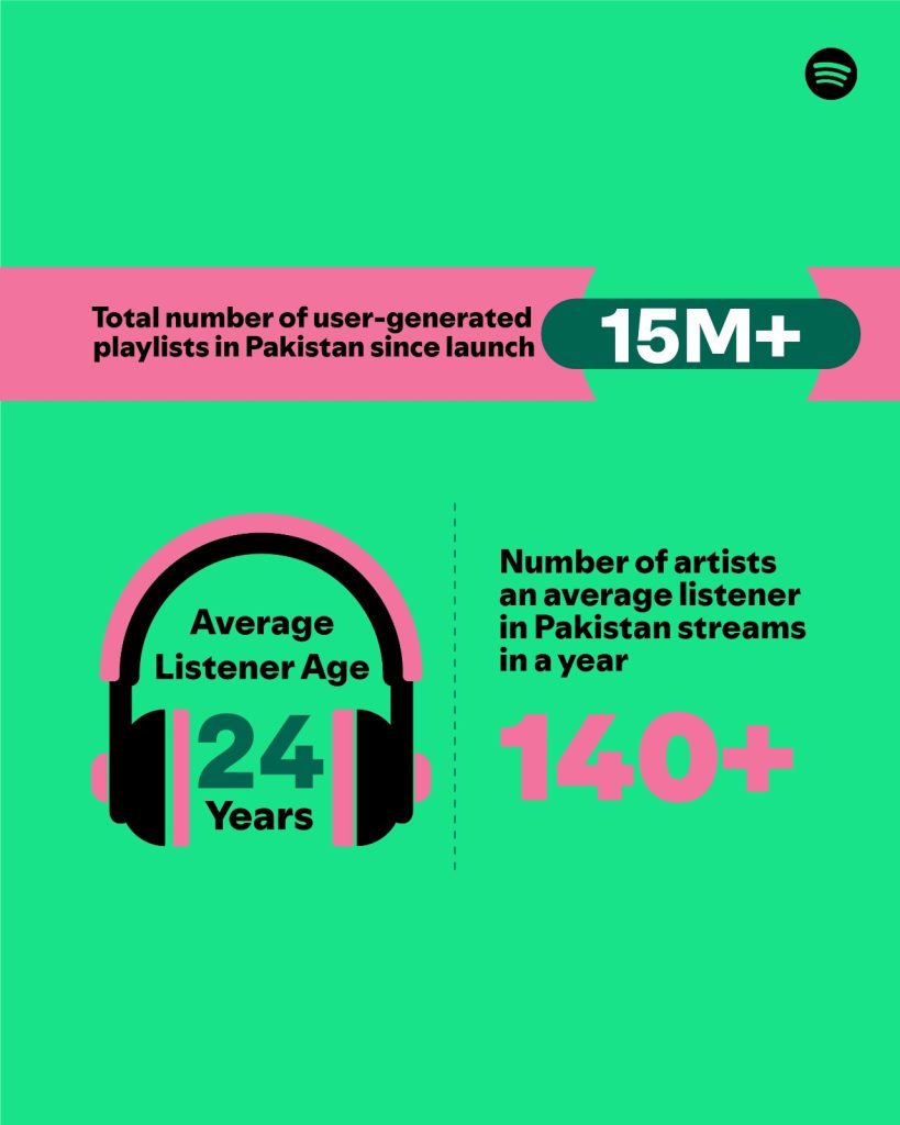 پاکستان میں اسپاٹیفائی سال 2021 سے اب تک موسیقی سننے کا ایک اہم ذریعہ بن چکا ہے۔ اس دوران پلیٹ فارم پر شائقین موسیقی کی تعداد میں 750 فیصد سے زیادہ اضافہ ہوا، جبکہ پاکستانی صارفین نے 1 کروڑ 50 لاکھ سے زائد اپنی پلے لسٹس تیار کیں۔ یہ اس بات کی واضح نشانی ہے کہ سامعین خود اپنی پسند کو ترتیب دے کر اپنے موسیقی کے سفر کو خود تشکیل دے رہے ہیں۔