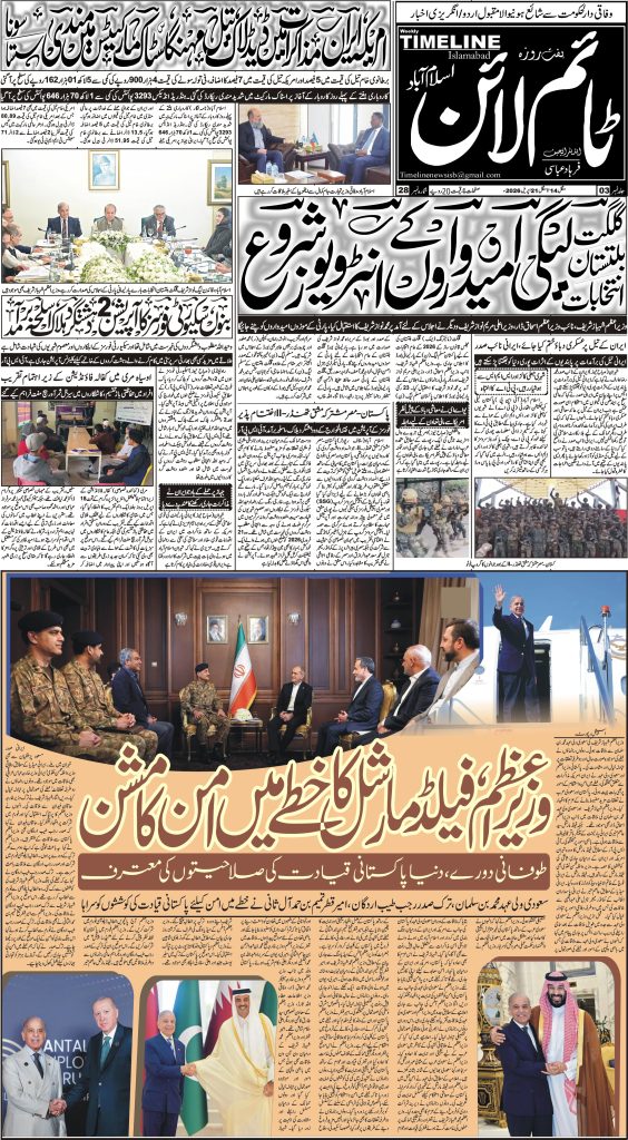 اخبار ٹائم لائن 21 اپریل 2026 Web Desk 21 اپریل, 2026 0 ٹائم لائن 21 اپریل 2026 Table of Contentsٹائم لائن 21 اپریل 2026 مزید پڑھیں: ٹائم لائن 21 اپریل 2026 https://dailytimeline.pk/?p=10175 https://timelinenews.com.pk/ رابطہ About The Author Web Desk See author's posts Tags: اخبار پاکستان ٹائم لائن دنیا Post navigation Previous: اے ایچ کے ایف 35,000 گھرانوں تک بنیادی صحت کی سہولیات تک رسائی، 100,000 تک پہنچنے کا ہدفNext: سردار ایاز صادق: پارلیمانی سفارت کاری کا پشتیبان جواب دیں جواب منسوخ کریںآپ کا ای میل ایڈریس شائع نہیں کیا جائے گا۔ ضروری خانوں کو * سے نشان زد کیا گیا ہےتبصرہ * نام * ای میل * ویب سائٹ اس براؤزر میں میرا نام، ای میل، اور ویب سائٹ محفوظ رکھیں اگلی بار جب میں تبصرہ کرنے کےلیے۔ Related Stories اخبار ٹائم لائن 13 اپریل 2026 Web Desk 13 اپریل, 2026 0 اخبار ٹائم لائن 08 اپریل 2026 Web Desk 8 اپریل, 2026 0 اخبار تازہ ترین ٹائم لائن 31 مارچ 2026 Web Desk 31 مارچ, 2026 0