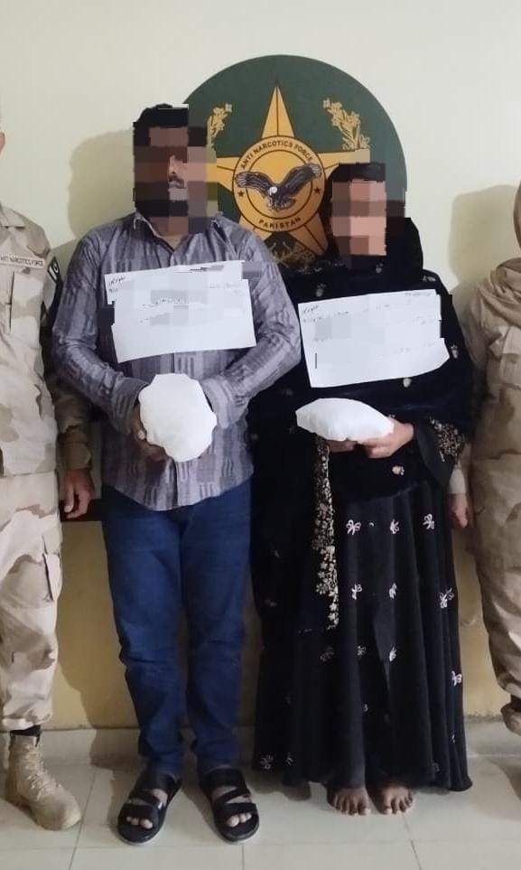 اے این ایف,7کاروائیوں کےدوران 2 خواتین سمیت 8 ملزمان گرفتار